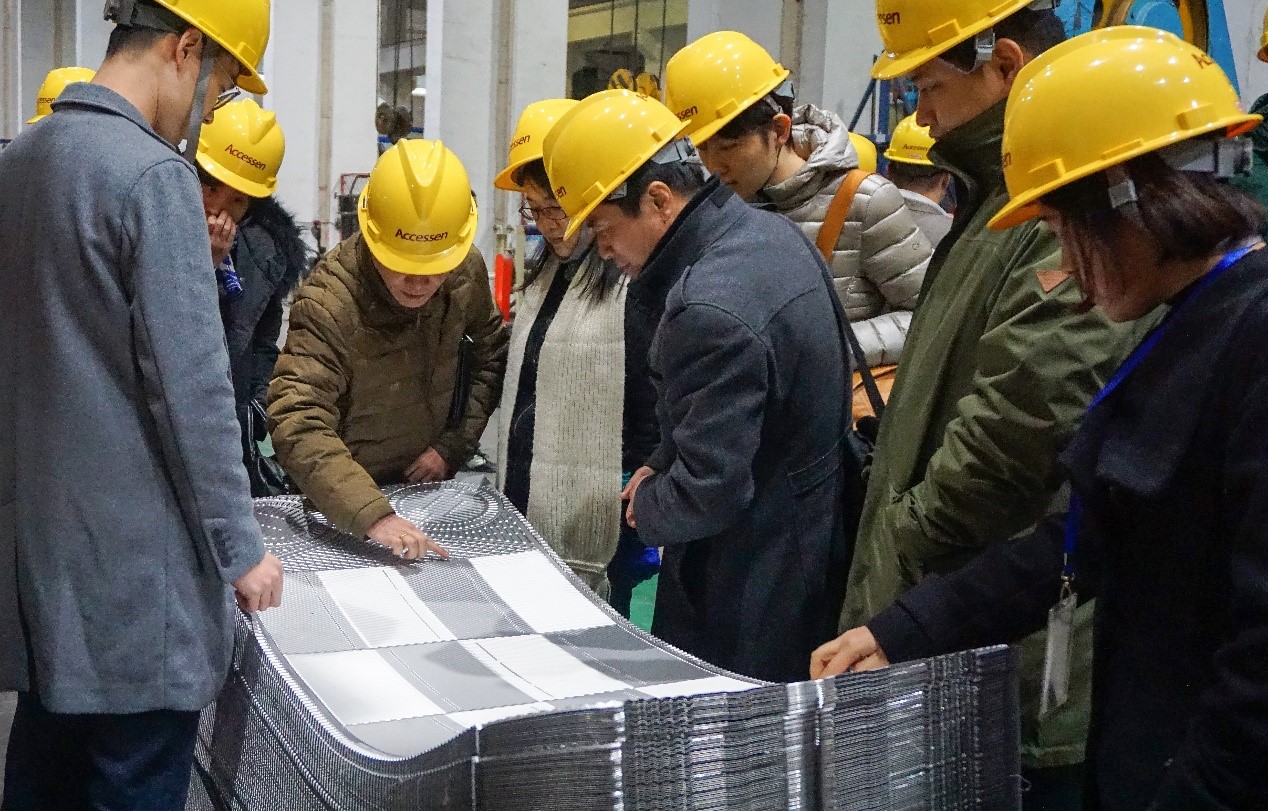 艾克森技術(shù)人員向?qū)<覉F詳細介紹了板式換熱器、焊接式換熱器和板式換熱機組等產(chǎn)品,并與專家們分享了艾克森產(chǎn)品在醫(yī)藥食品行業(yè)的成功應(yīng)用案例和技術(shù)特點。帶領(lǐng)專家團走進謝春路工廠和太倉工廠的生產(chǎn)一線,觀看了艾克森的生產(chǎn)加工設(shè)備,了解板式換熱器整個生產(chǎn)工藝的流程。公司引入的先進自動化生產(chǎn)設(shè)備,包括全球先進的電泳涂裝生產(chǎn)線和自動化焊接機器人、換熱機組全性能測試平臺、E-cloud智慧能源系統(tǒng)等設(shè)備,引起了專家們極大的興趣。就艾克森核心的板式換熱技術(shù)向?qū)<覉F介紹了板片的獨特設(shè)計,可以根據(jù)不同的工況設(shè)計不同的形狀和深度,以達到最佳換熱效果。機器人切割和焊接技術(shù),更大程度保證管件尺寸精確,焊接質(zhì)量更穩(wěn)定。電泳涂裝生產(chǎn)線可以延長管道壽命,耐腐蝕性更高,耐高溫,降低管道阻力的特點等,得到了專家們的一致肯定。