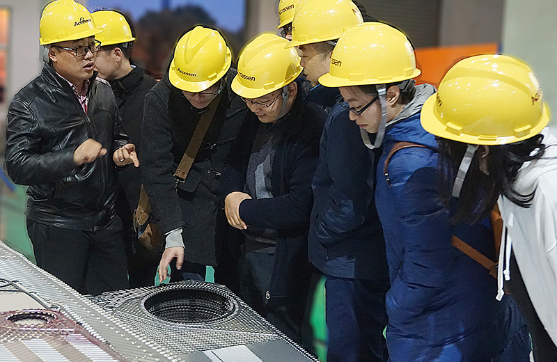 對(duì)于板式換熱器的選型中常見的問(wèn)題,技術(shù)人員與專家設(shè)計(jì)師進(jìn)行了深入的討論。供暖(冷)系統(tǒng)對(duì)板式換熱器提出小溫差,高承壓等級(jí),運(yùn)行阻力低,結(jié)構(gòu)緊湊等越來(lái)越多的要求,艾克森根據(jù)不同項(xiàng)目的需求,結(jié)合實(shí)際,提供最適合的換熱解決方案。在大功率換熱器工況中,單臺(tái)板式換熱器的負(fù)荷越來(lái)越大,對(duì)數(shù)平均溫差越來(lái)越小,對(duì)此艾克森專門研發(fā)的小溫差換熱設(shè)備,能實(shí)現(xiàn)高NTU換熱,滿足實(shí)際應(yīng)用的需求。對(duì)于樓宇站的不同工況,如小型二級(jí)換熱站,小型三級(jí)換熱站,小型三級(jí)混水站等形式,艾克森提出的隨需應(yīng)變的解決方案,讓系統(tǒng)更加節(jié)能,穩(wěn)定,控制更智能,同時(shí)便于熱計(jì)量。