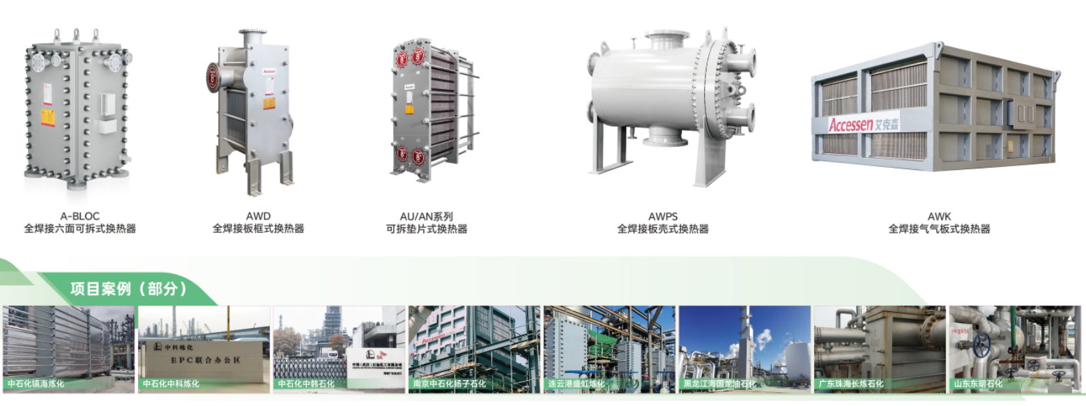 艾克森的換熱產(chǎn)品和解決方案覆蓋了中石油、中石化等企業(yè)的各個下屬單位,還包括非三桶油的各類地?zé)捄褪髽I(yè)、包括中化泉州、中海殼牌、恒逸石化、盛虹煉化、衛(wèi)星石化、桐昆石化、寧波金發(fā)、煙臺萬華、山東聯(lián)泓、東明石化、魯清石化、中景石化、翔鷺石化、華錦阿美等知名企業(yè)的各個工藝段。