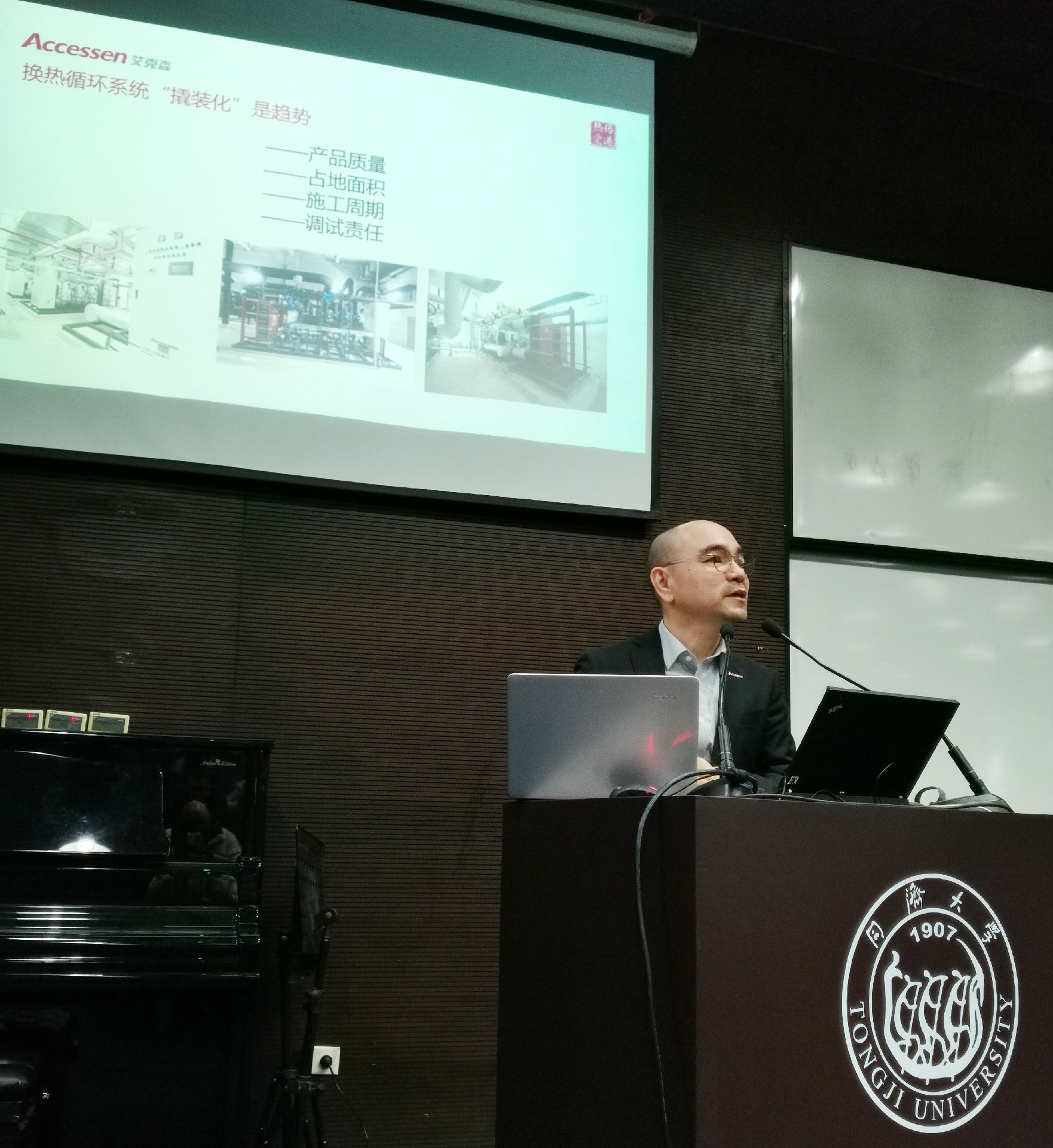 上海艾克森作為中國勘察設計協(xié)會建筑環(huán)境與能源應用分會的企業(yè)會員,受邀參加了本次年會,并發(fā)表了《換熱系統(tǒng)的模塊化》的專題報告。隨著系統(tǒng)集成的廣泛應用,換熱機組以結構緊湊、控制智能化等優(yōu)勢,在市場上廣受歡迎。艾克森作為板式換熱機組國家標準的參編單位,一直以引領換熱行業(yè)發(fā)展為目標,重點推出的魔方移動集裝箱式換熱站是對換熱站建設的革新,可以根據(jù)不同的需求靈活快速設計組合,降低建設周期和成本,整體式安裝,模塊化設計,智能、便捷、人性化設計深受客戶好評。技術人員在展臺向與會專家進一步介紹艾克森產(chǎn)品,并演示艾克森板換組成結構,交流換熱原理,眾多客戶的駐足交流,氣氛熱烈。艾克森將與暖通行業(yè)專家、設計師、工程單位、設備制造企業(yè)攜手努力,志存高遠,持續(xù)創(chuàng)新,共同推動暖通空調(diào)行業(yè)的新發(fā)展。(部分演講專題如下:)