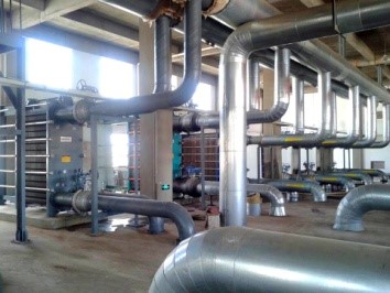 首站或中繼隔壓站主要就是通過換熱器進(jìn)行壓力隔斷,同時保證溫度的下降最小,是整個節(jié)能降耗系統(tǒng)內(nèi)的關(guān)鍵點之一。將熱源廠出來高溫高壓的熱水,通過板式換熱器將二次側(cè)水加熱后作為二級換熱站的熱源使用,實現(xiàn)高溫高壓輸送、低溫低壓使用的理念。2011年煙臺福山熱力采用了兩臺AN30系列換熱器,單臺熱負(fù)荷52MW,設(shè)計壓力16Bar。艾克森開發(fā)的AN、AP系列首站/隔壓站用換熱器有14個型號,單臺最大80MW,壓力25Bar,具有單臺熱負(fù)荷大、單側(cè)溫差大、對數(shù)溫差小、流量大、設(shè)計壓力高等特點。廣泛使用于山東海陽宏峰熱力、內(nèi)蒙古特弘熱力集團、新疆烏蘇市供熱、新疆呼圖壁集中供熱等諸多集中供熱首站或中斷隔壓站項目中。